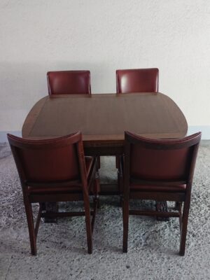 オーク材 ドローリーフテーブル&チェアー4脚セット