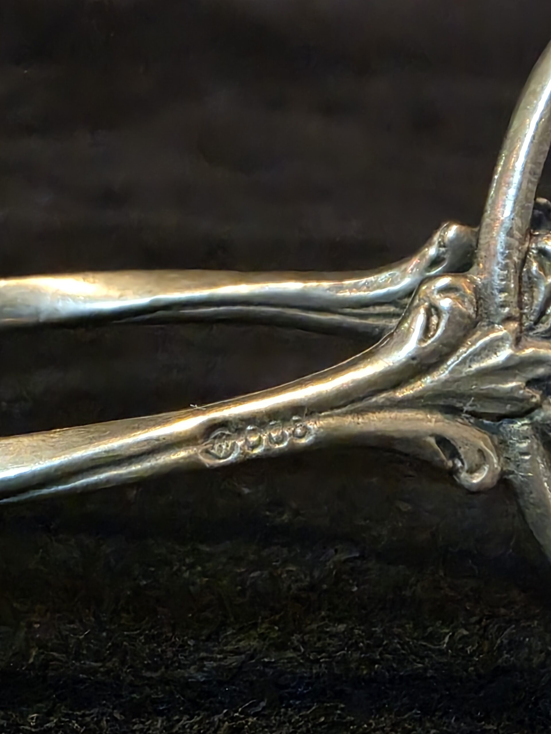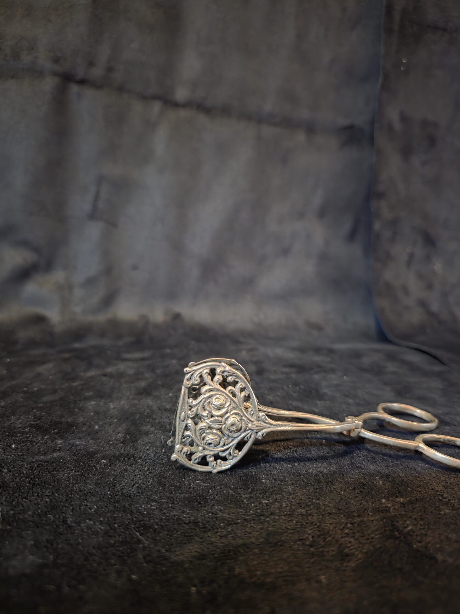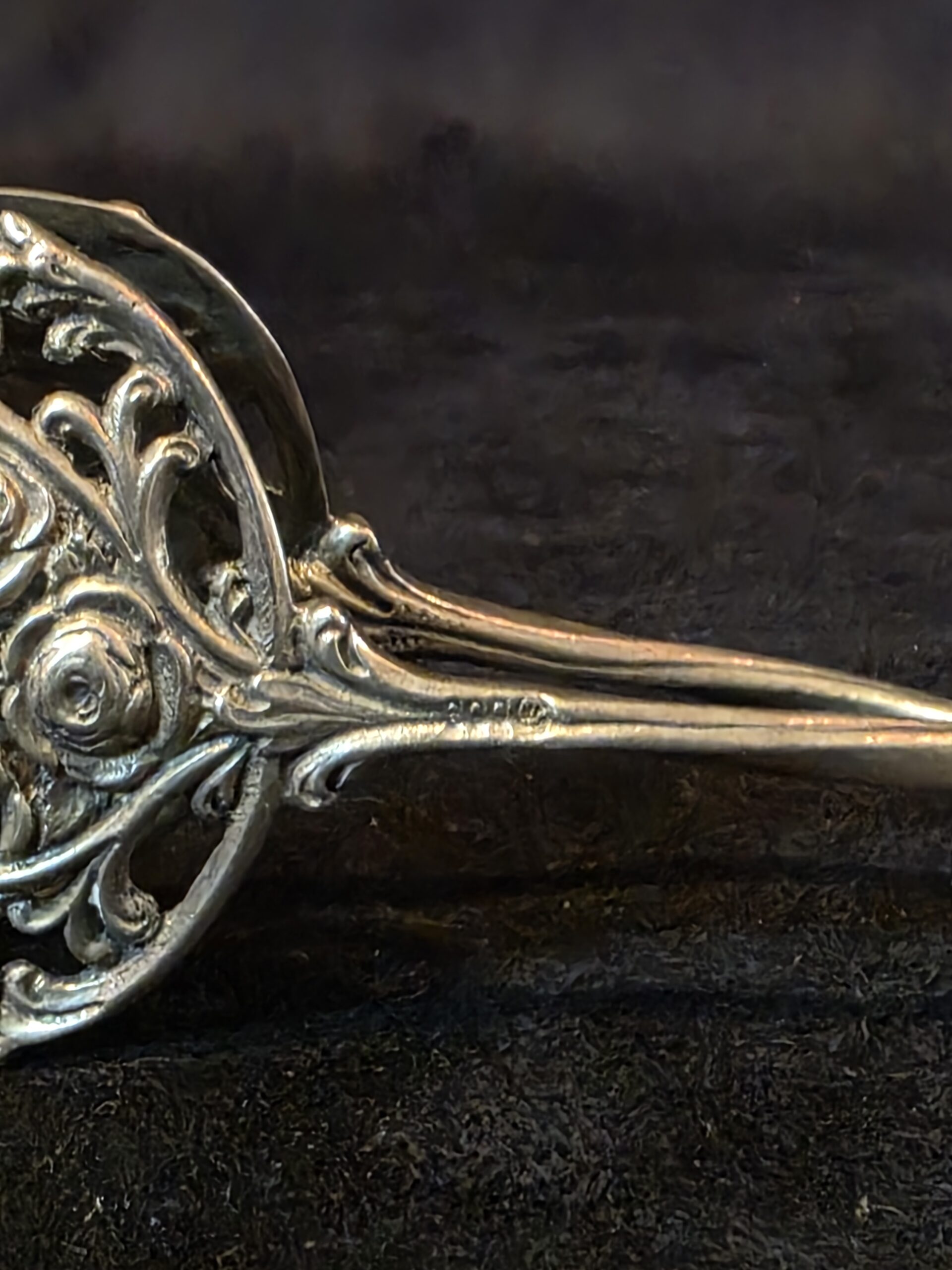フレンチシルバー バラデザインシュガートング フレンチシルバーのバランデザインが施されたシュガートングになります。 繊細なデザインのバラが美しい作品となっております。 年代 サイズ 約 L : 125mm 価格 38,500円(税込) ID 50K-108 お問い合わせ