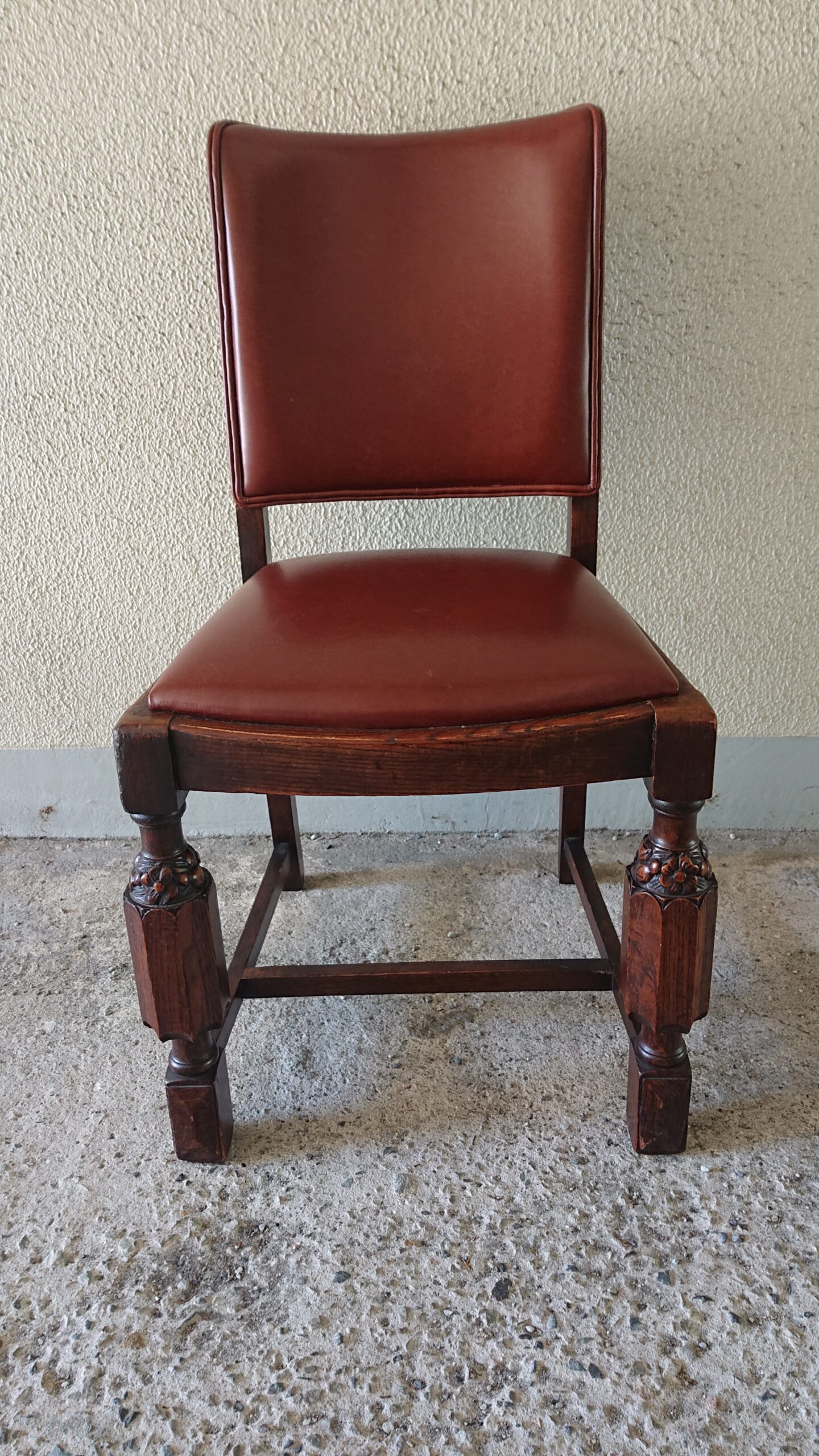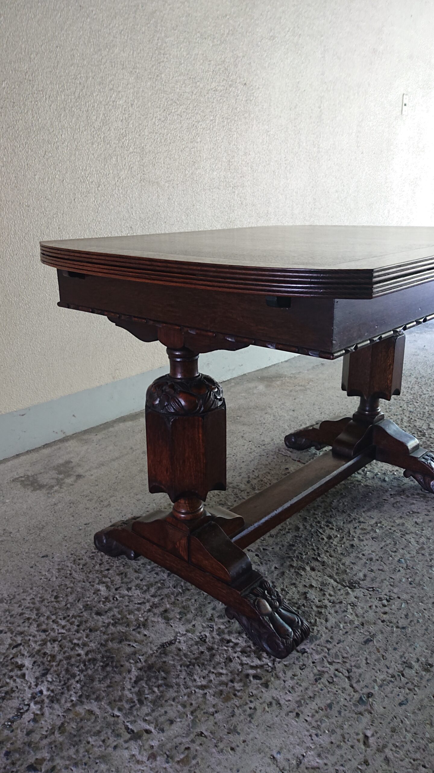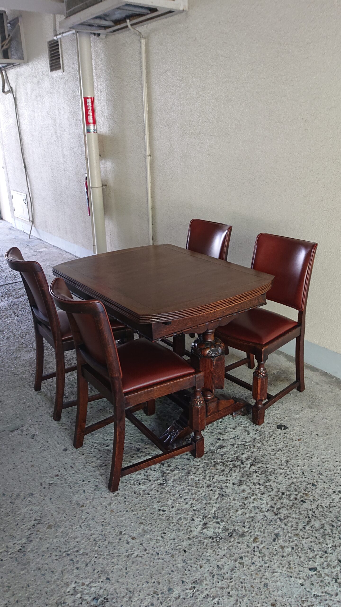 しっかりとした彫刻のある脚が特徴的なテーブルとチェア。