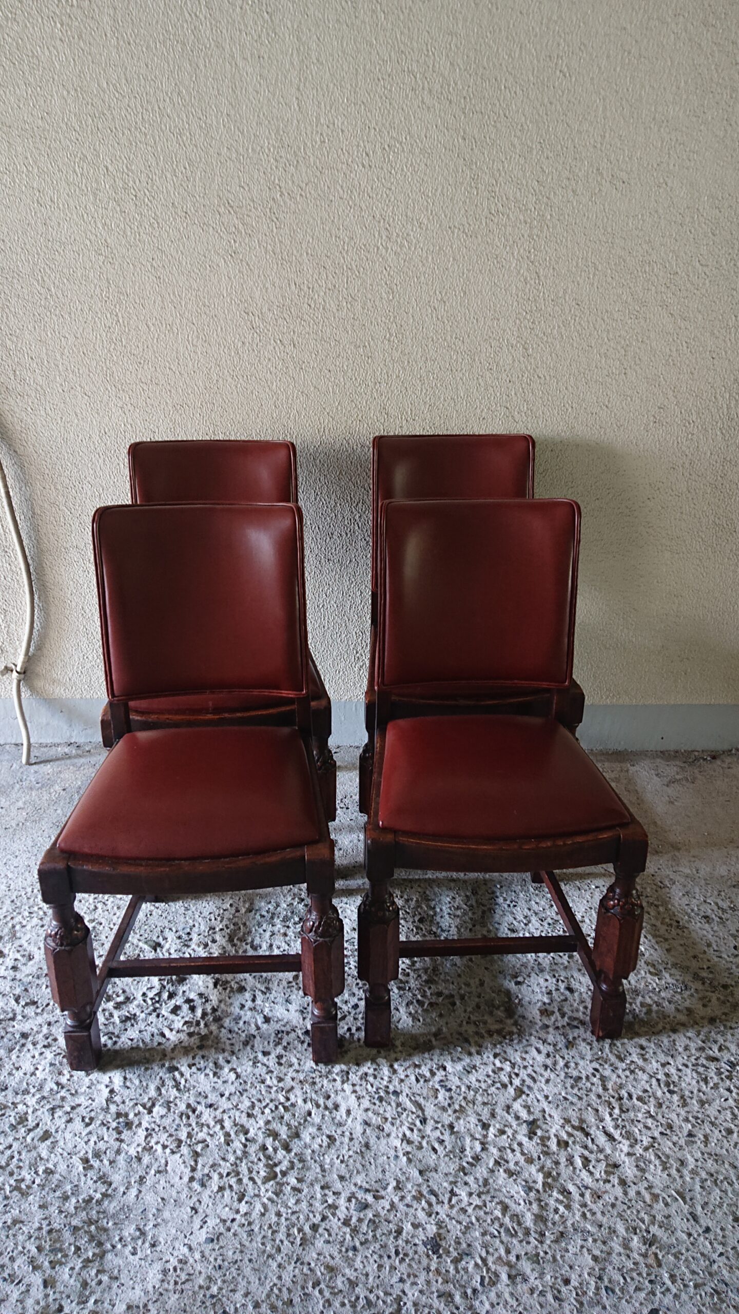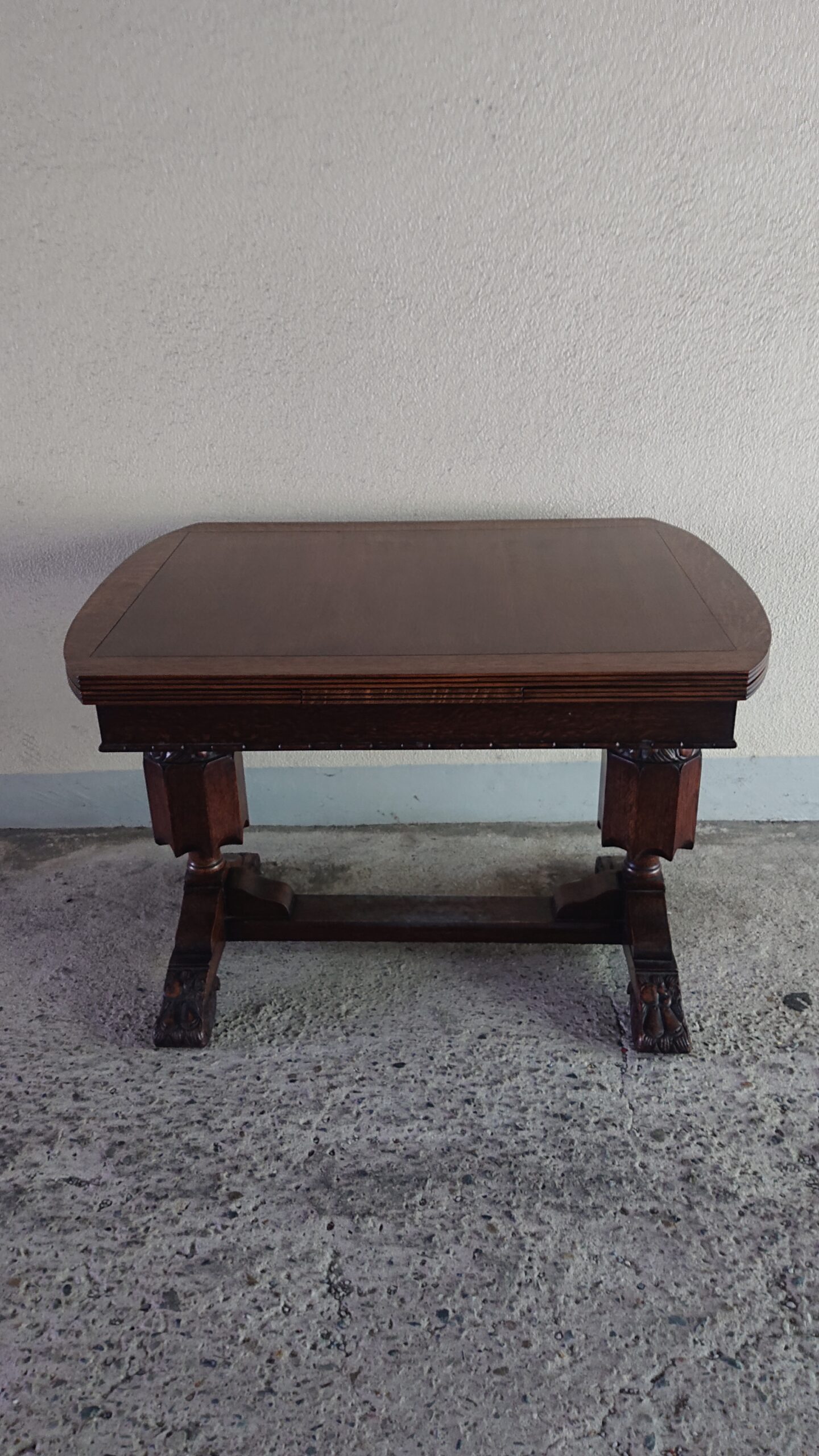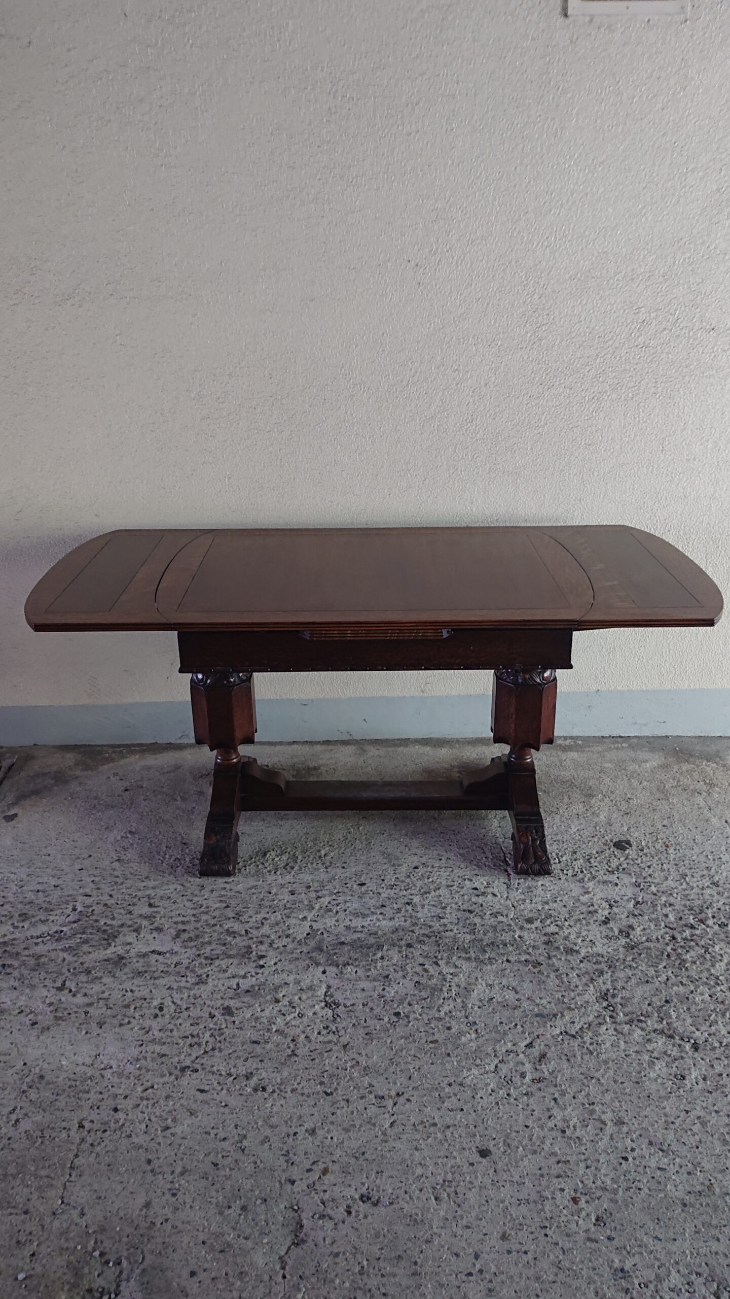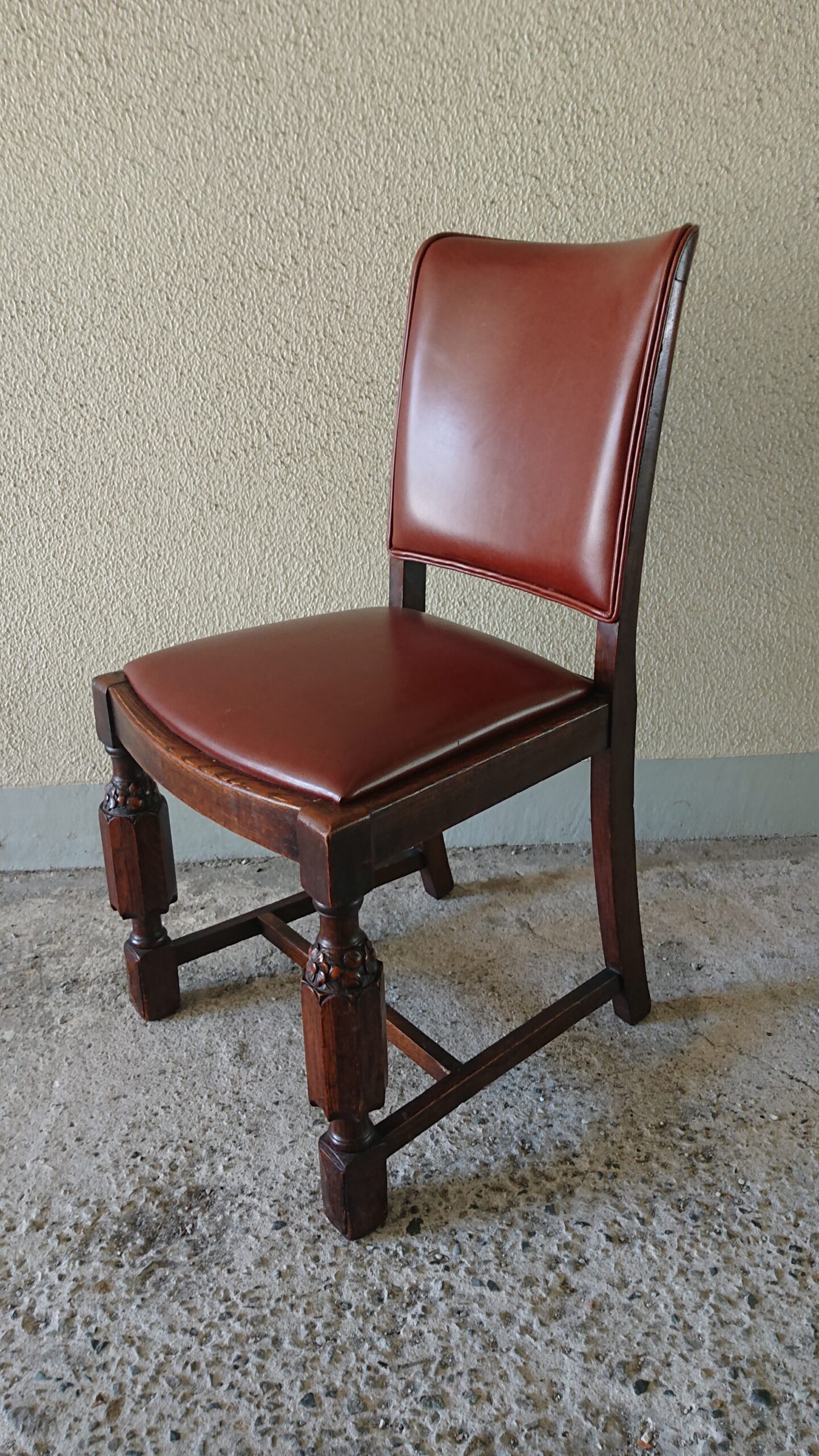 しっかりとした彫刻のある脚が特徴的なテーブルとチェア。