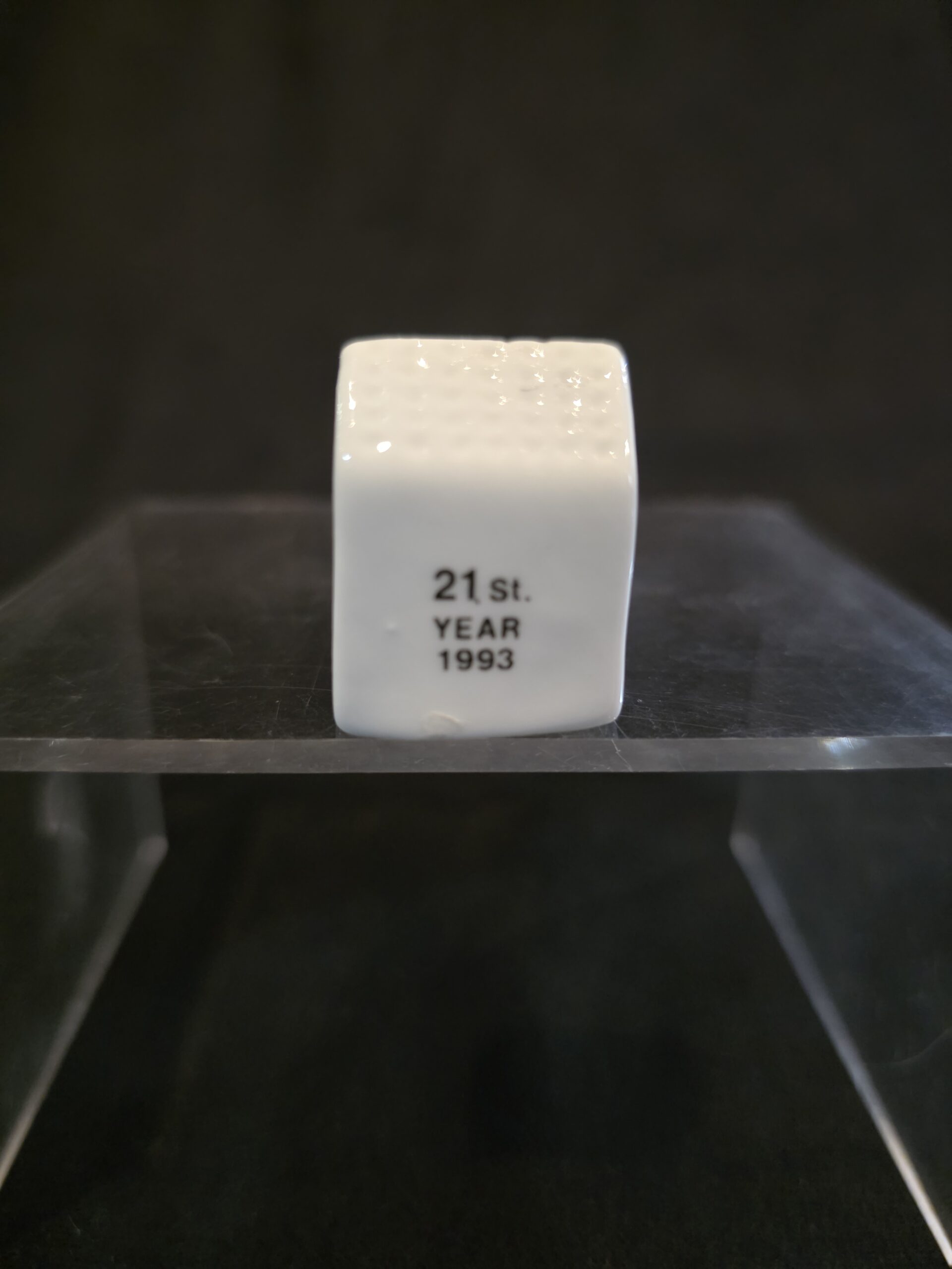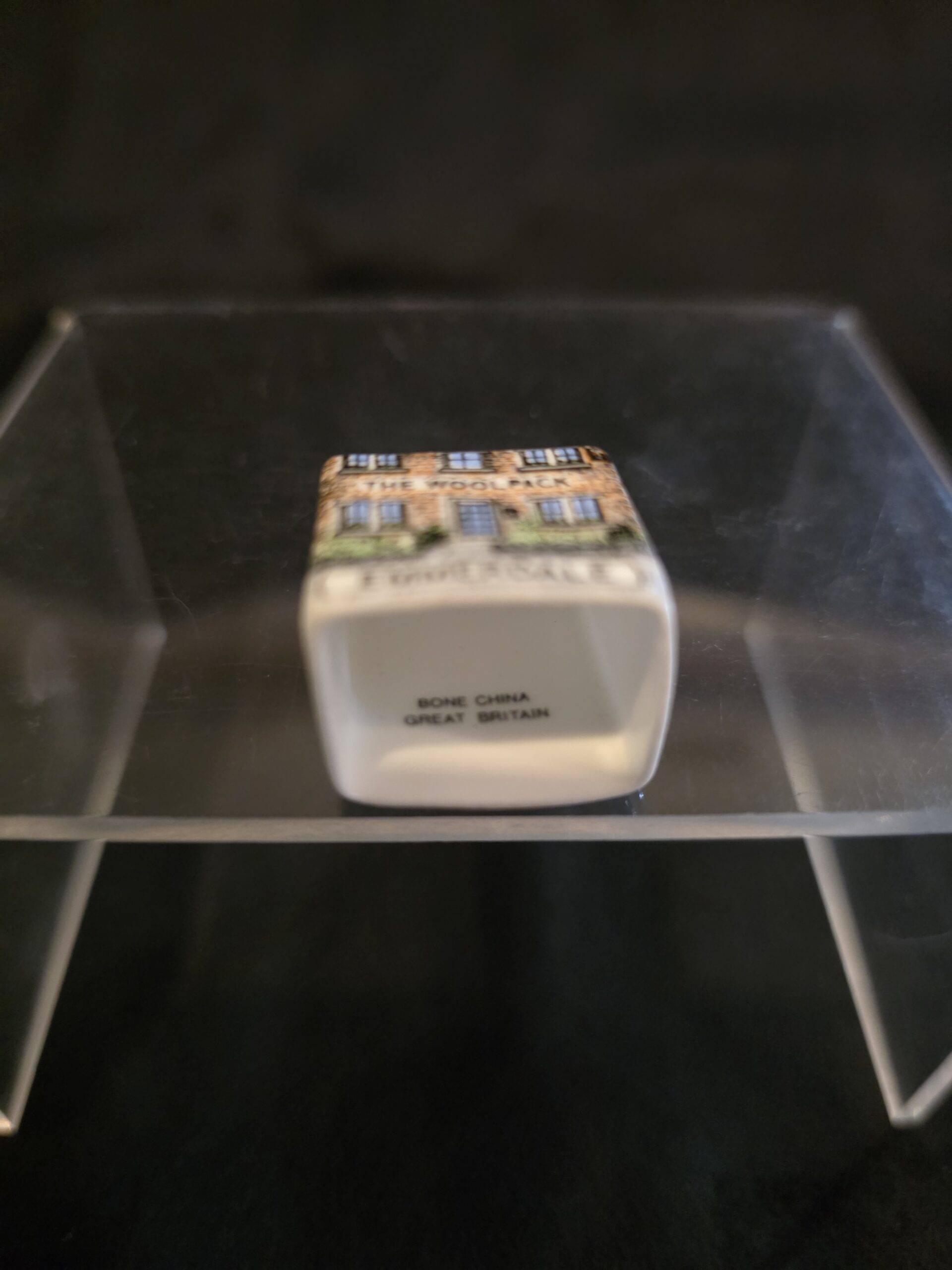 THE WOOLPACK EMMERDALEと書かれたデザインのシンブル。EMMERDALEは英国テレビ会社が製作した長寿番組。その番組内で使われていたパブの名前がTHE WOOLPACK (ザ ウールパーク)になります。
