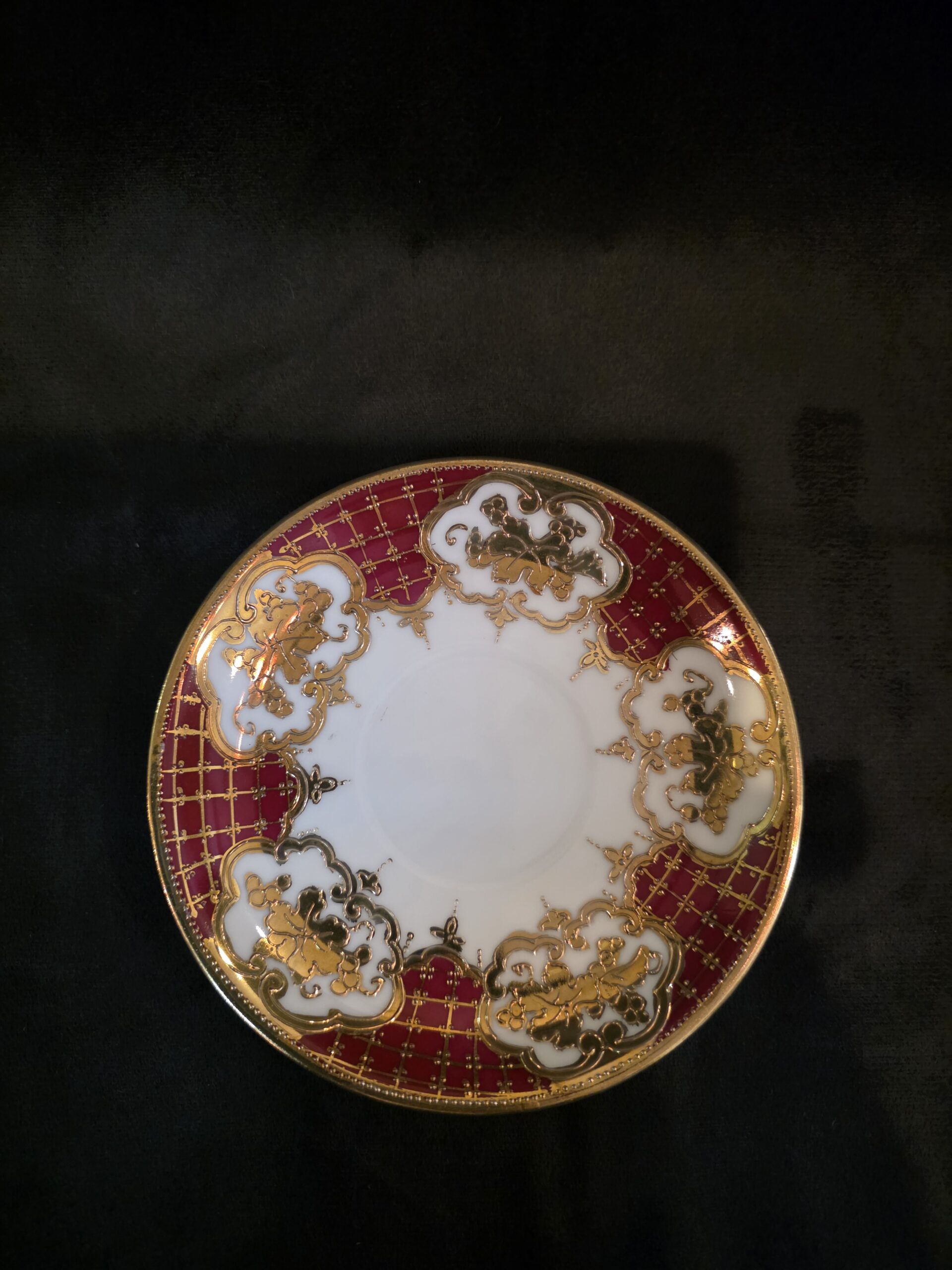 珍しい赤と白色の上に金盛技法を施した作品は華やかな作りであり、当時の職人のレベルの高さを感じさせるものとなっております。